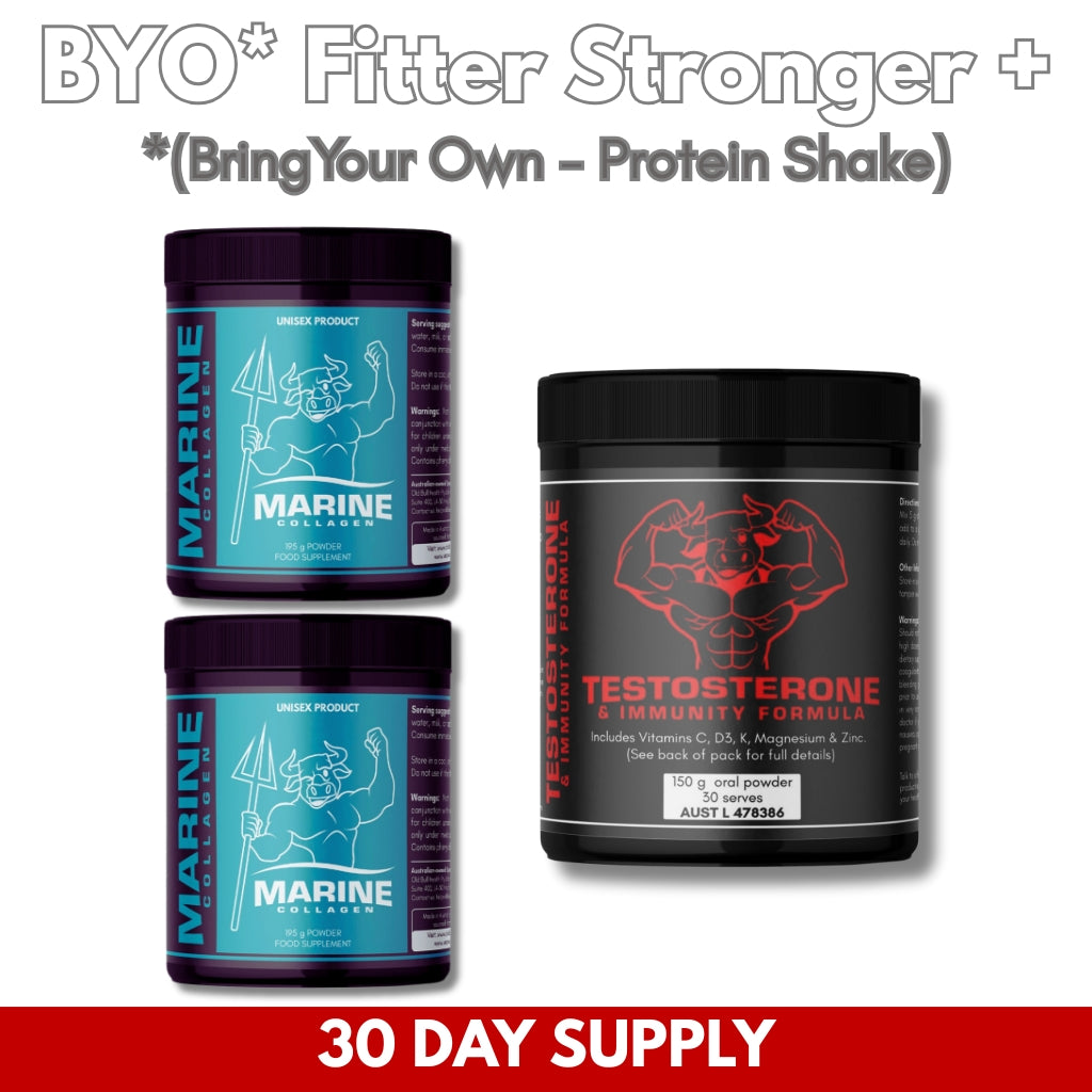 The BYOP Fitter Stronger Plus Bundle is a 30-day bundle, just without the protein, for those who already have a favourite protein or flavour and who refuse to change, and that's OK. Just BYOP. Get all the goodies discounted and make your own Fitter Stronger Plus Bundle.